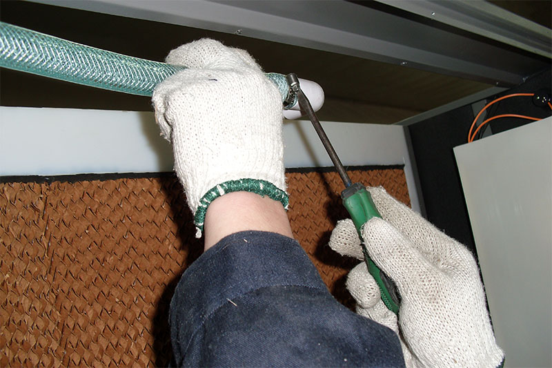 4、 卸开上水软管与湿膜框架上连接管路紧固件螺丝。
